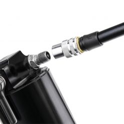The Air-Lock valve adaptor, designed to prevent air loss when disconnecting the valve from the shock, screws and unscrews onto a threaded Schrader valve on the shock in one easy step.