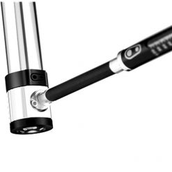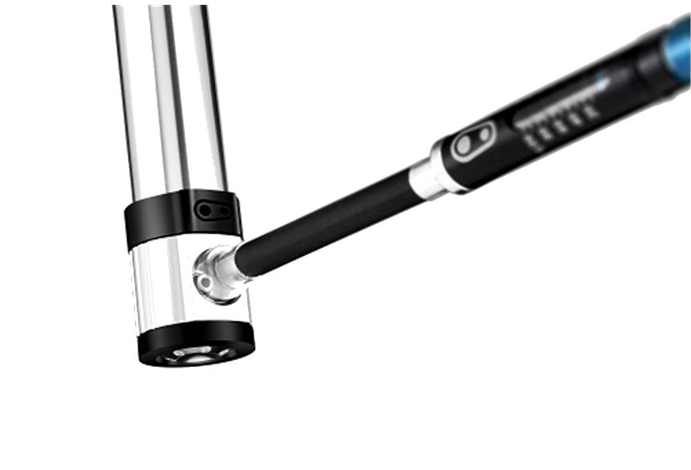 Features also include an air pressure gauge, magnetic head with twisting collar, a folding and locking handle, and a presta/schrader valve adapter (fully threaded presta valve bodies only)