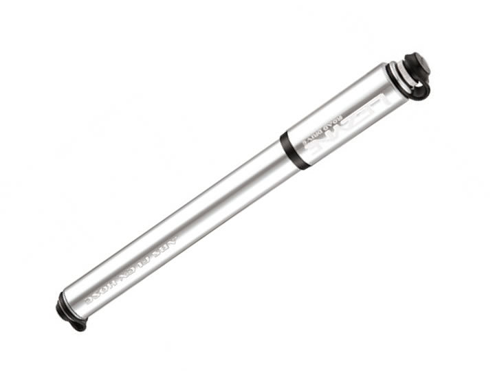 The barrel, handle, piston, end caps, and frame pump mount are all custom CNC-machined. The HP design makes this a frame pump replacement, inflating tires to riding pressure with 20% fewer strokes compared to conventional hand pumps. Comes equipped with ABS Speed Flex Hose.