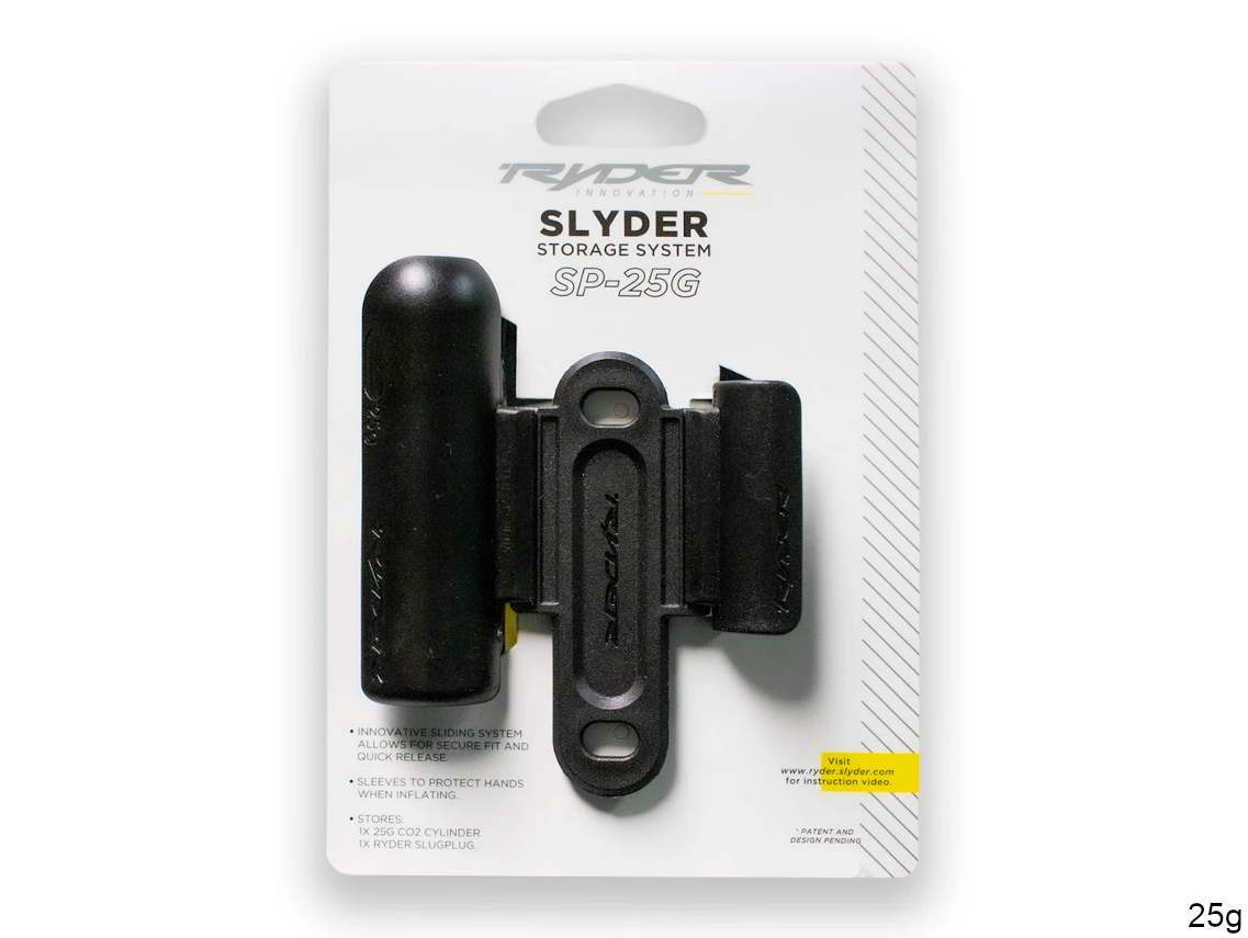 Slyder CO2 Storage System is a unique sliding storage system that allows you to discretely mount CO2 canisters to your frame, seat post or bottle cage. The patented sliding sleeve system allows for a secure fit and a quick release whilst also protecting your fingers from freeze burn when using CO2 canisters.