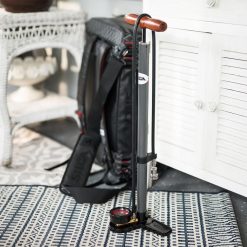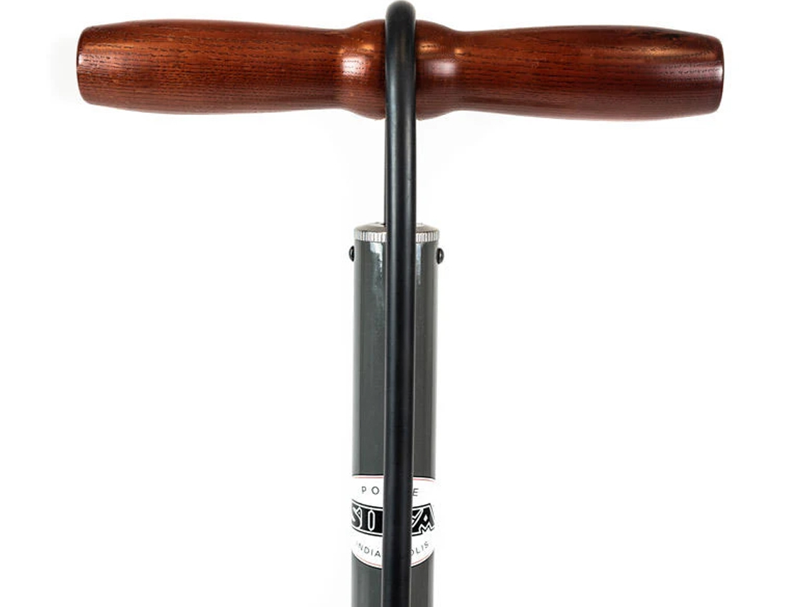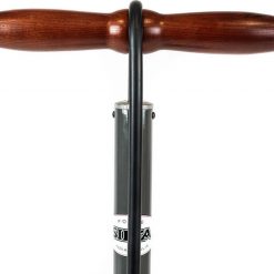PISTA PLUS is a floor pump thatโs built to outlast the rest of your cycling equipment. The durable steel barrel, 3mm-thick leather plunger piston design, combined with our proprietary brass air bridge and check-valve assembly ensure unrivaled longevity. The smaller-diameter barrel matched with the superior pumping efficiency of our classic 28mm 731 model Italian leather piston gasket and self-lubricating linear bearings means that PISTA PLUS is capable of easily reaching pressures up to 220 PSI. PISTA PLUS features a three-footed aluminum base and full-size lathe-turned Ash handle. The chuck dock on PISTA PLUS secures the chuck at the Schrader chuck allowing the rider to swap the standard chuck out for our HIRO chuck or Disc Wheel Adapter while retaining the ability to secure the hose to the pump.ย The large 64mm gauge is accurate to 2% and features a high contrast face design.