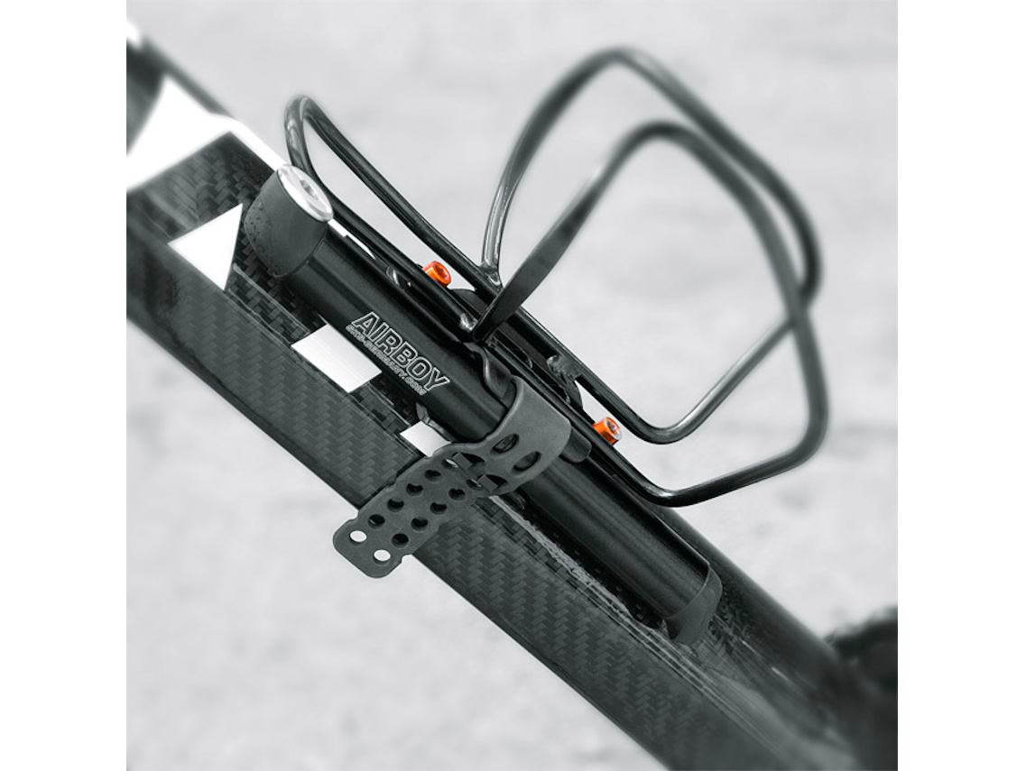 The unique 2-chamber/2-plunger pumping system provides high pumping efficiency in an extremely compact size. Small enough for a jersey pocket. Soft, ergonomic end-piece allows for comfortable pumping with pressure from the palm of your hand. The smaller Airboy (length = 172 mm • diameter = 19 mm) pumps up to 8bar/115psi and is suitable for Presta & Dunlop valves.