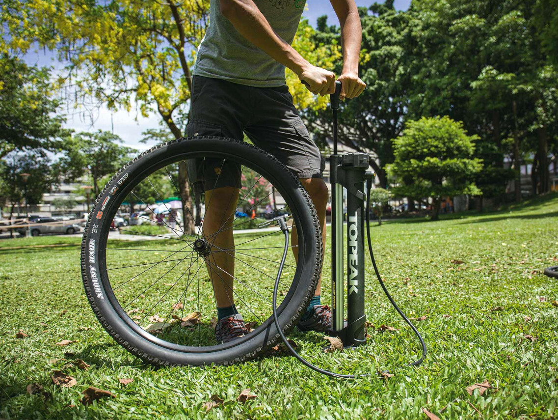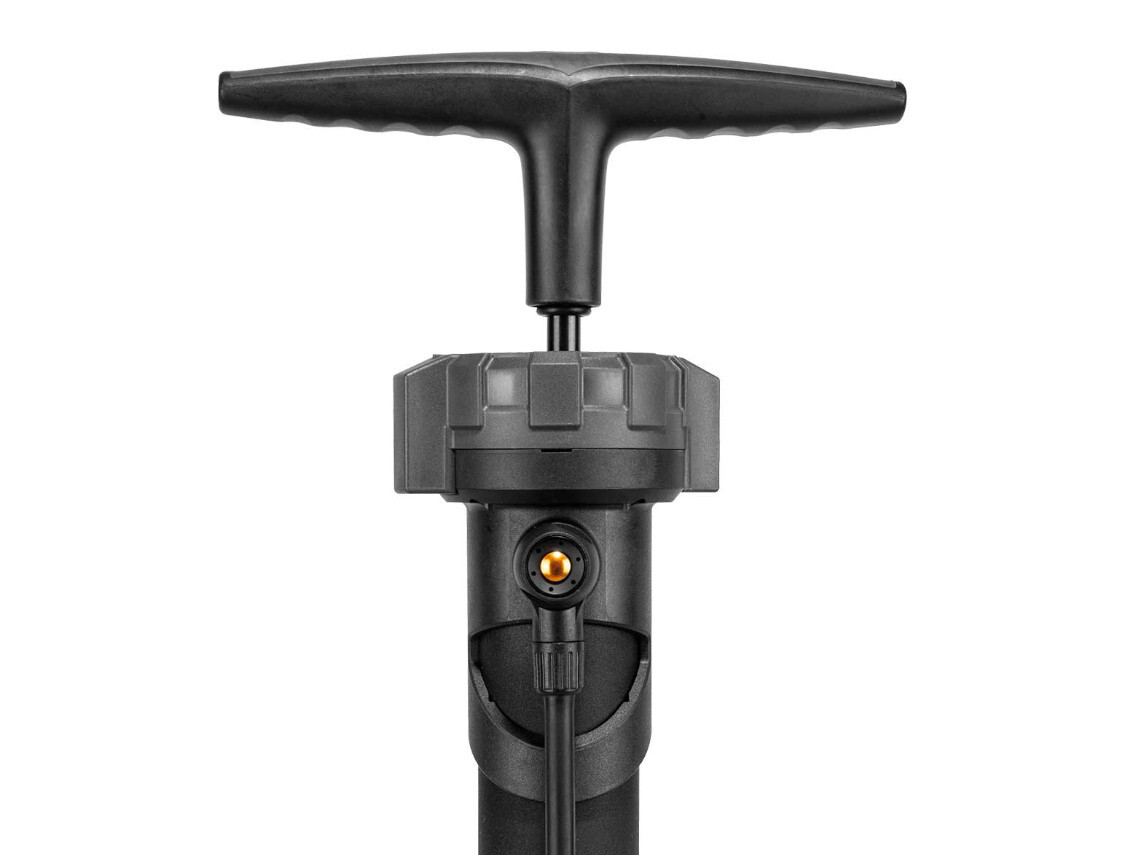 This pump has an integrated aluminum air chamber that stores an air charge of one liter, up to 160psi / 11 bar, to quickly fill your tire and ensure the proper installation on a tubeless rim, just like a shop compressor. Once you flip the selector from “Charge” to “Inflate” mode, air bypasses the chamber and flows directly into your tire like a standard pump. The top-mounted easy to read gauge, air release button and comfortable dual density polymer grip, combined with its extra-long hose and stable base makes mounting tubeless and standard tires a breeze!