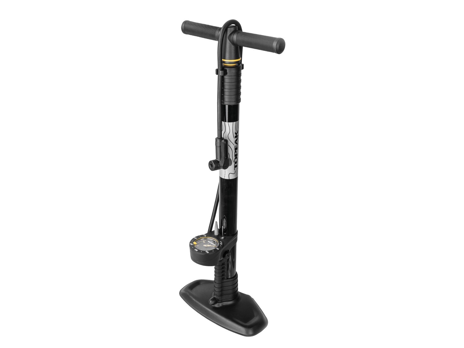 This unique mountain bike specific floor pump features a super-sized barrel that inflates tubes nearly 50% faster than normal floor pumps. It delivers the higher volume required for large off-road tires and the extra sensitive 3” easy-to-read low pressure analog gauge helps dial in the proper pressure while the large steel base provides stability.