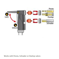Head: Presta/Schrader/Dunlop with Integrated Dust Cap