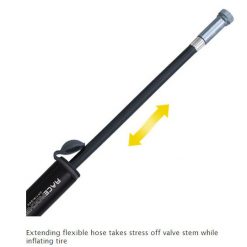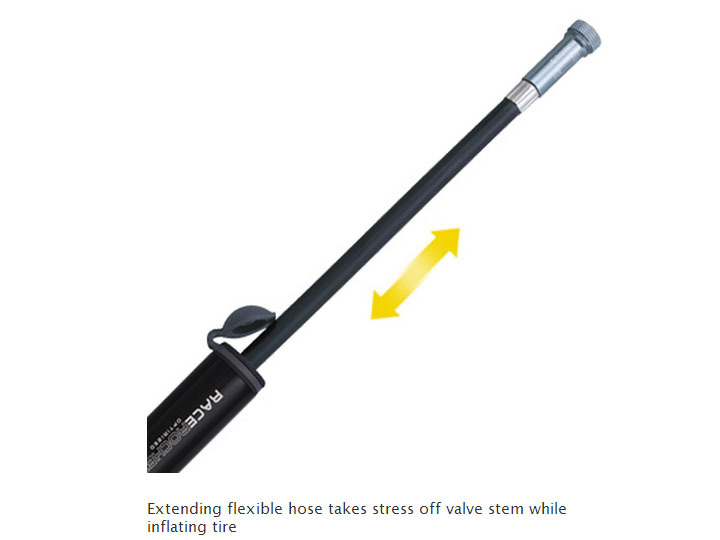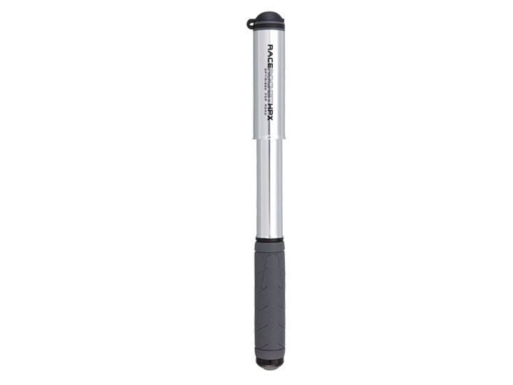 Our longest and slimmest version in the RaceRocket series this all aluminum pump fills high pressure road tires fast. This elegant mini pump features an all aluminum body, head and pump handle and is designed with a narrow barrel diameter and longer stroke to handle higher pressures with ease. An extendable hose with SmartHead ThreadLock fills Presta and Schrader valves with ease and helps take stress off the valve stem when filling the tire. Its efficient and smooth action inflates tires to 160 psi / 11 bar. The RaceRocket HPX mounts to frame with included bracket. With the power to fill high pressure tires and a weight of only 109 g the RaceRocket HPX is the pump to take on the road.