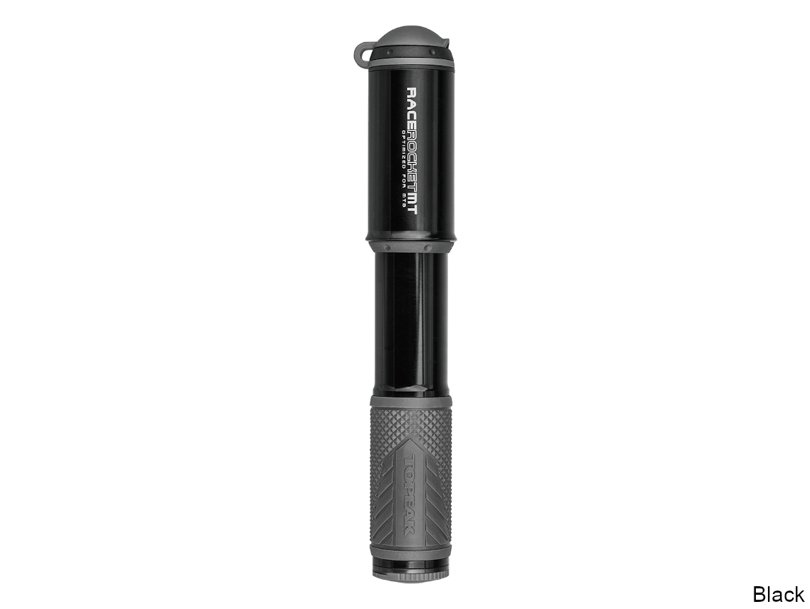 This elegant little mini pump features a full aluminum body, head and pump handle and is designed with an increased barrel diameter to push more air per stroke. An extendable hose with SmartHead ThreadLock fills Presta and Schrader valves with ease and helps take stress off the valve stem when filling the tyre. Its efficient and smooth action inflates tyres to 90 psi / 6 bar. Compact in size it easily fits in a jersey pocket or saddle bag and with a low weight of only 114 g the RaceRocket MT is never a burden to carry into the backwoods.