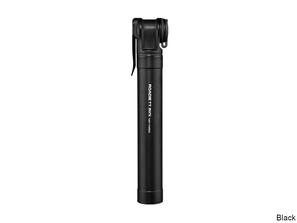 The Roadie TT Twin Turbo is a full metal, pocket sized mini pump that transfers larger air volume from a bigger diameter outer chamber into a smaller diameter inner chamber to deliver more air at higher pressures to fill tires 50% faster and easier. Integrated dust cap keeps pump head clean and thumb lock lever ensures an air-tight seal.