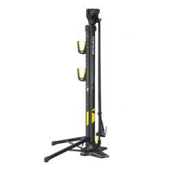 An extra-long pump hose reaches the front wheel easily. It features adjustable hooks allowing quick positioning to fit chainstays / seatstays and provide rear wheel lift. This compact and dual function design stand / pump is the perfect assistant for your bike storage and repair / maintenance needs.