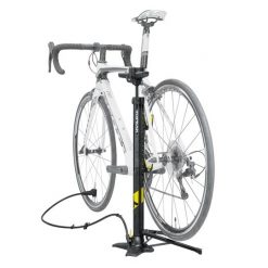 Portable bike stand / floor pump combo for maintenance and storage of your bike.