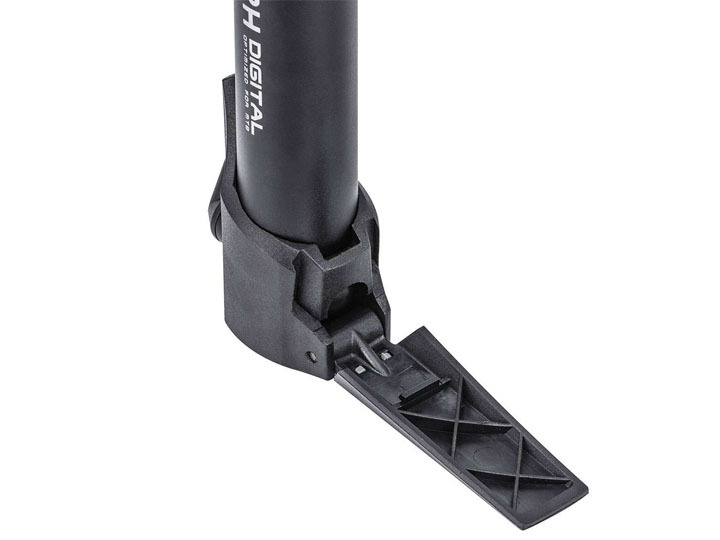Top-mounted flip-down digital gauge provides accurate tire pressure up to 160 psi / 11 bar